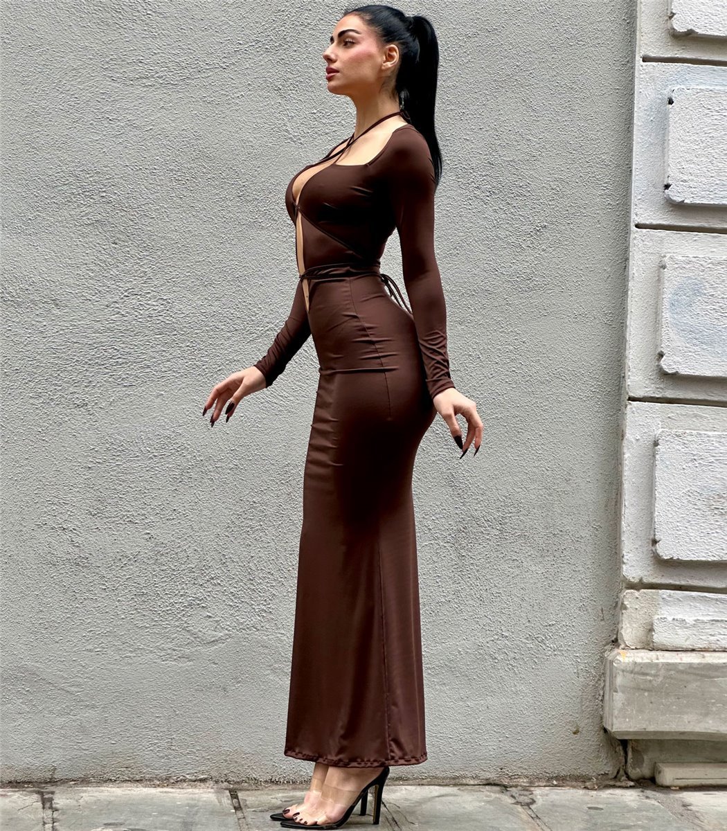 Φόρεμα μάξι με δεσίματα Naomi (Καφέ)