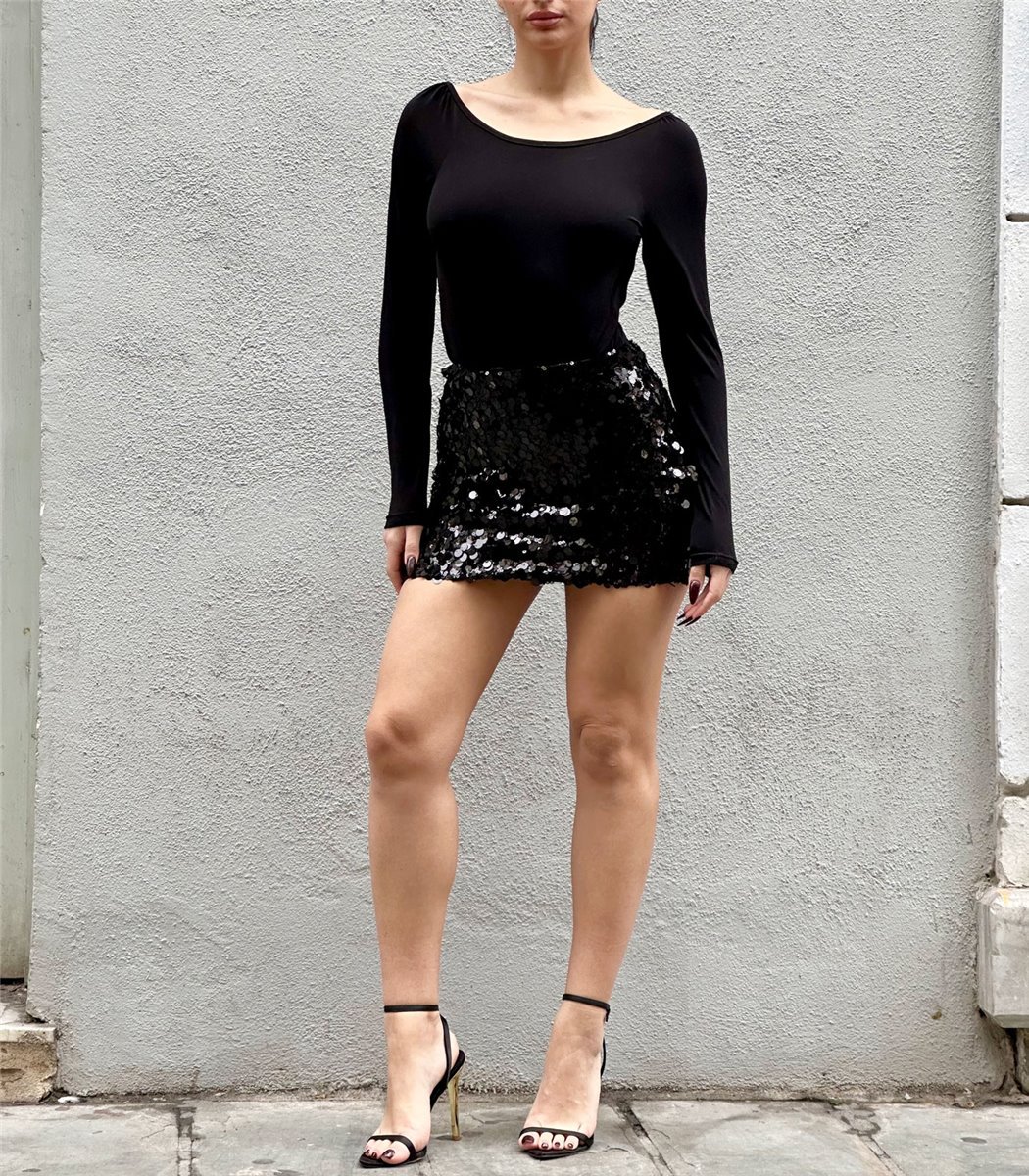 Μαύρη ψηλόμεση φούστα κοντή ελαστική με φόδρα. Jenny