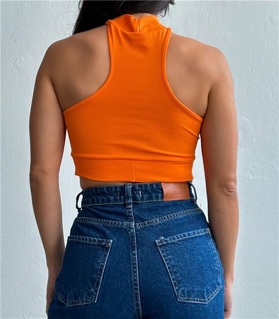 Πορτοκαλί τοπ ριπ ζιβάγκο με επένδυση και λωρίδα. Μικρή ελαστικότητα.