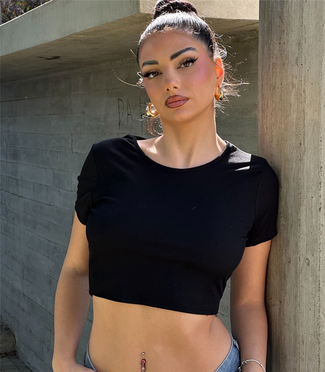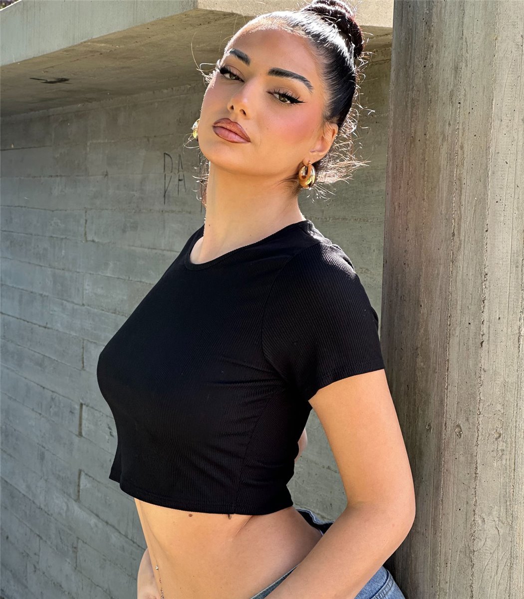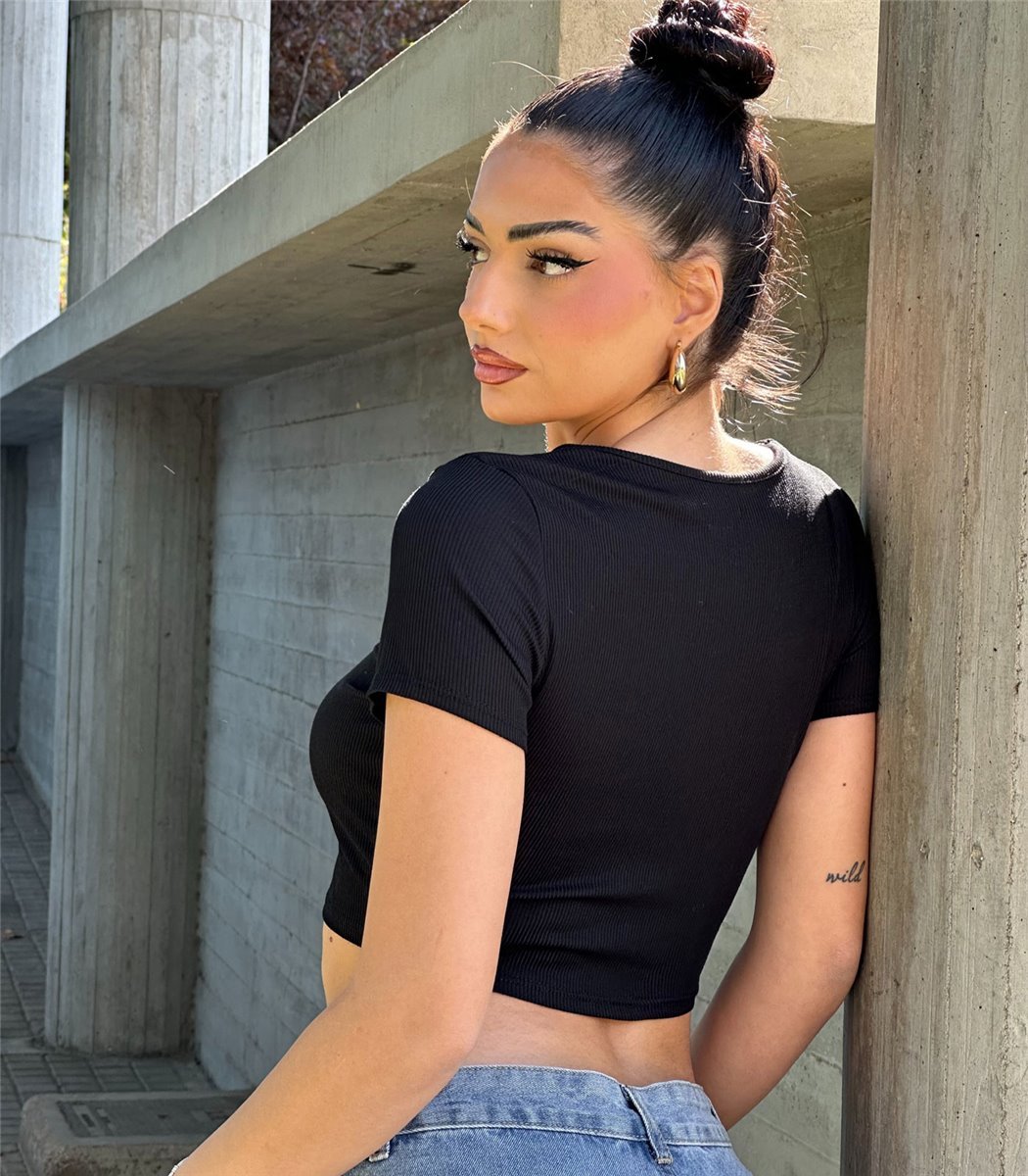 Μαύρο τοπ ριπ κοντομάνικο. Ivy