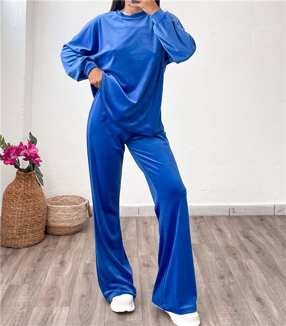 Σετ μπλούζα - παντελόνι βελούδο (Μπλε)