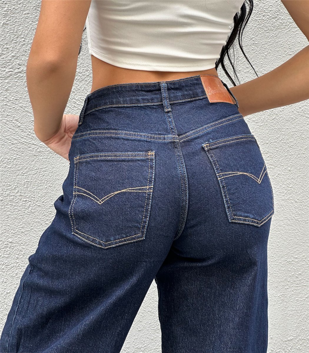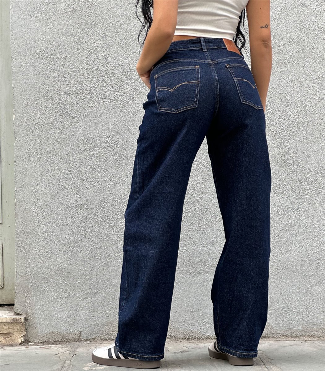 Μπλε τζιν ψηλόμεσο φαρδύ Baggy με μικρή ελαστικότητα.
